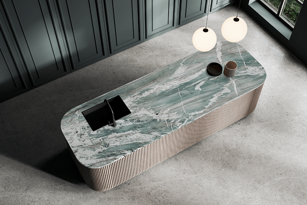 As bancadas e ilhas de quartzito oferecem a mistura perfeita de beleza natural, durabilidade, resistência ao calor e resistência a manchas para atender a essas demandas.