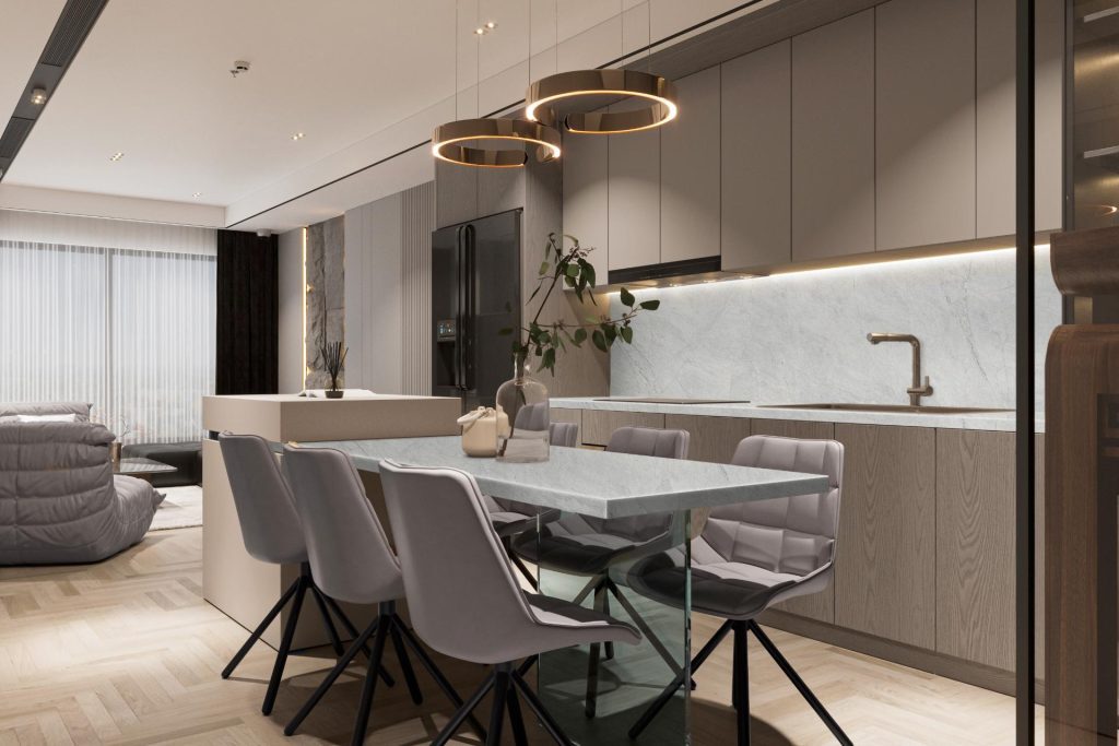 Utilizado em bancadas, ilhas centrais e até mesmo em paredes, o revestimento de mármore agrega funcionalidade e estética aos ambientes:
