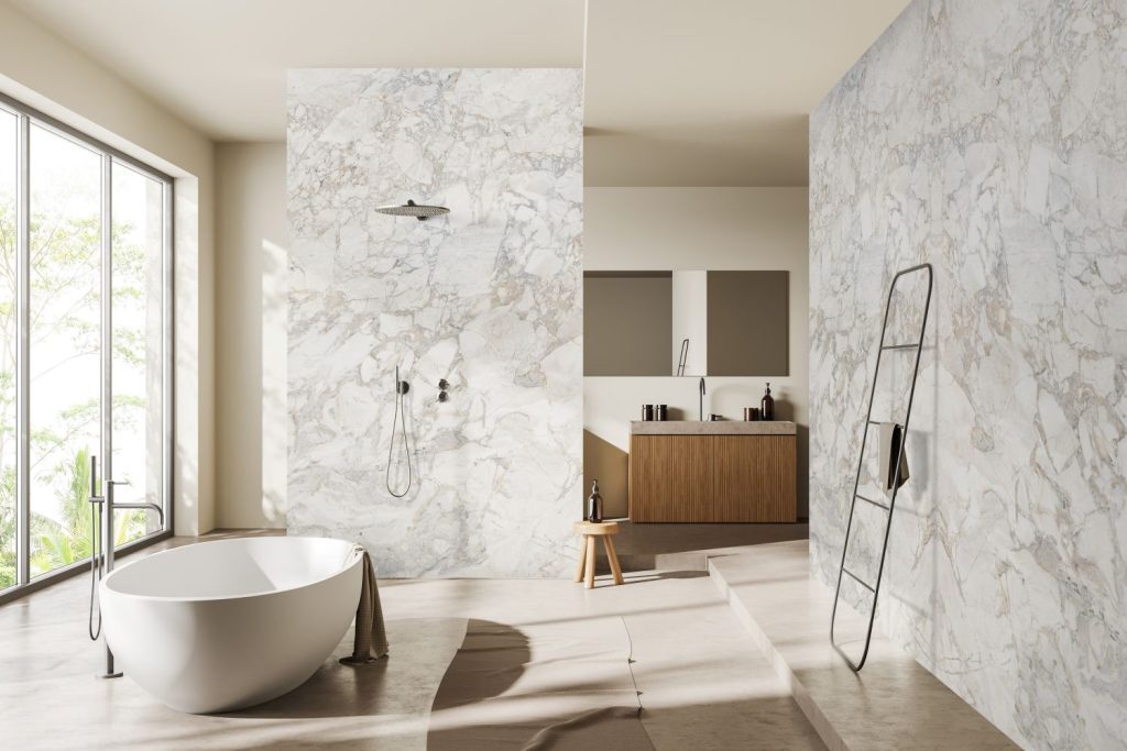 Composto por dolomita, o Michelangelo Prime é um material premium com resistência superior — perfeito para áreas de alto tráfego ou ambientes úmidos, como banheiros contemporâneos. Sua alta densidade minimiza riscos e manchas, preservando a beleza por muitos anos. Além disso, atende à demanda por materiais sustentáveis e duradouros, oferecendo uma excelente relação entre qualidade e investimento ao longo do tempo.