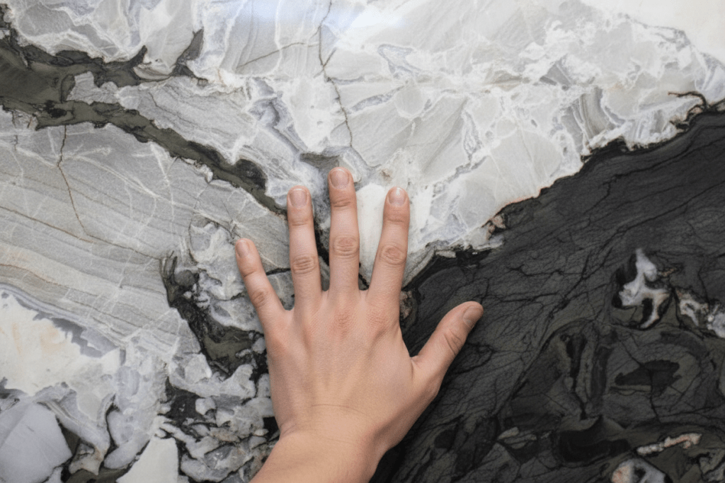 Mas é no diálogo com o que está ao redor que sua força real aparece. Quartzitos, cristais e mármores dolomíticos revelam sua potência máxima quando o contraste os impulsiona. É o contraste que faz o olhar parar, perceber, respirar e explorar o ambiente com mais profundidade.